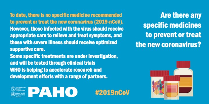 Hasta la fecha, no existe un medicamento específico recomendado para prevenir o tratar el nuevo coronavirus Covid-19.