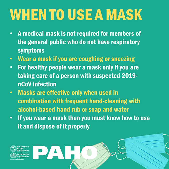 Cuándo usar una máscara. No se requiere una máscara médica para los miembros del público en general que no tienen síntomas respiratorios. Use una máscara
